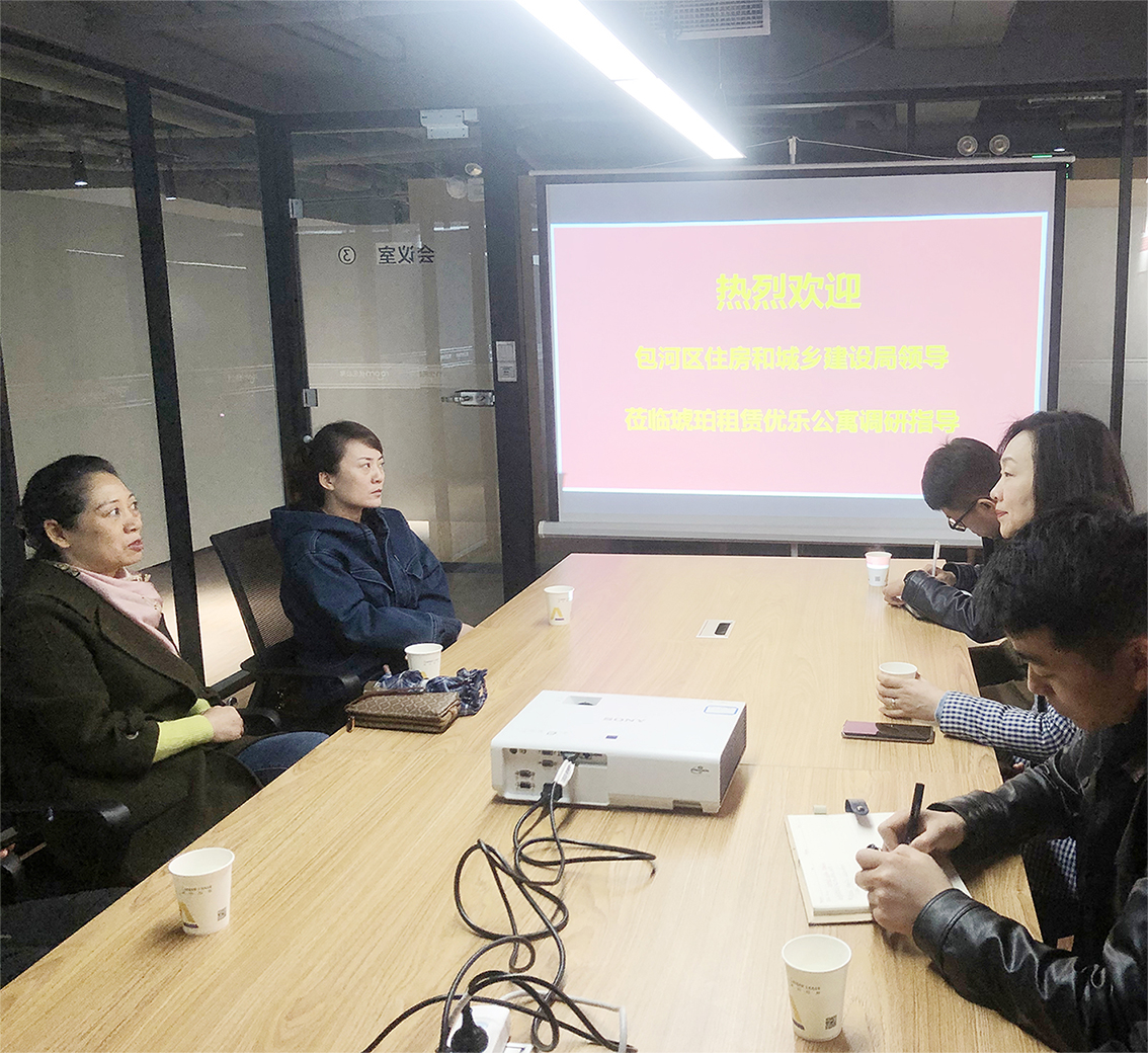 4月7日上午,合肥市包河区住房和城乡建设局副局长罗艳丽一行莅临优乐公寓三孝口店调研指导工作,琥珀租赁常务副总经理李婷婷携部分员工参与陪同调研。