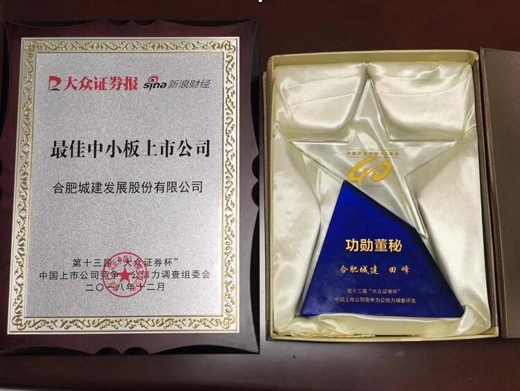 由证券时报社主办、中证中小投资者服务中心有限责任公司指导的2019首届中国上市公司高质量发展论坛暨“天马奖”第十届中国上市公司投资者关系评选颁奖典礼于2019年4月26日在北京举行。 公司董事会秘书田峰同志被评选为中国中小板上市公司投资者关系最佳董秘。在目前A 股958家中小板上市公司中,仅有50家上市公司董秘获此殊荣...