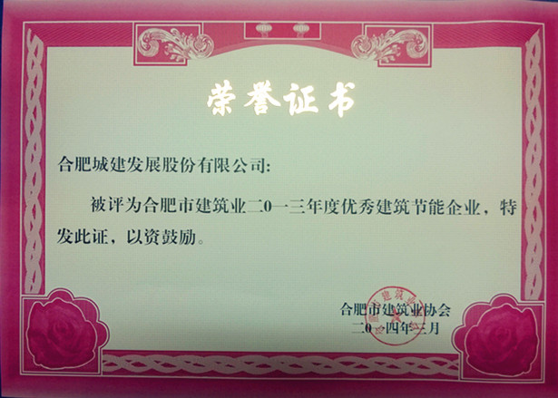 世界杯官网 被评为“合肥市建筑业2013年度优秀建筑节能企业”